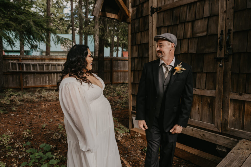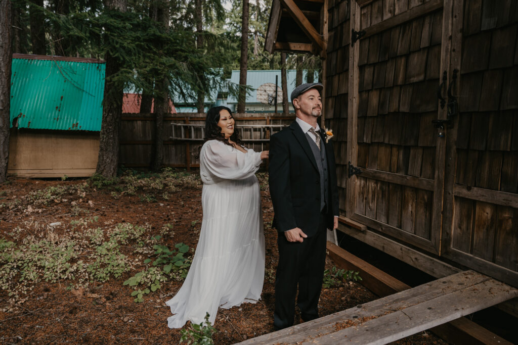 The first look happened right in the backyard of the tiny AirBnb, surrounded by the beauty of nature. The cutest little A Frame cabin, you can find the AirBnb link here: https://www.airbnb.com/rooms/16941194?source_impression_id=p3_1698269549_O3vVJdjd%2FzPbboEm