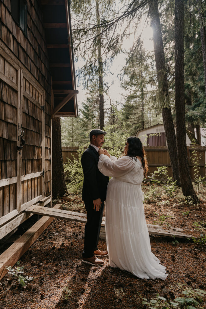 We spent the morning at their cozy, tiny A-frame cabin in the woods for getting ready photos and a first look. Celena and Jerry legalized their marriage at the courthouse beforehand and kept their details simple, such a lovely way to start off the day!