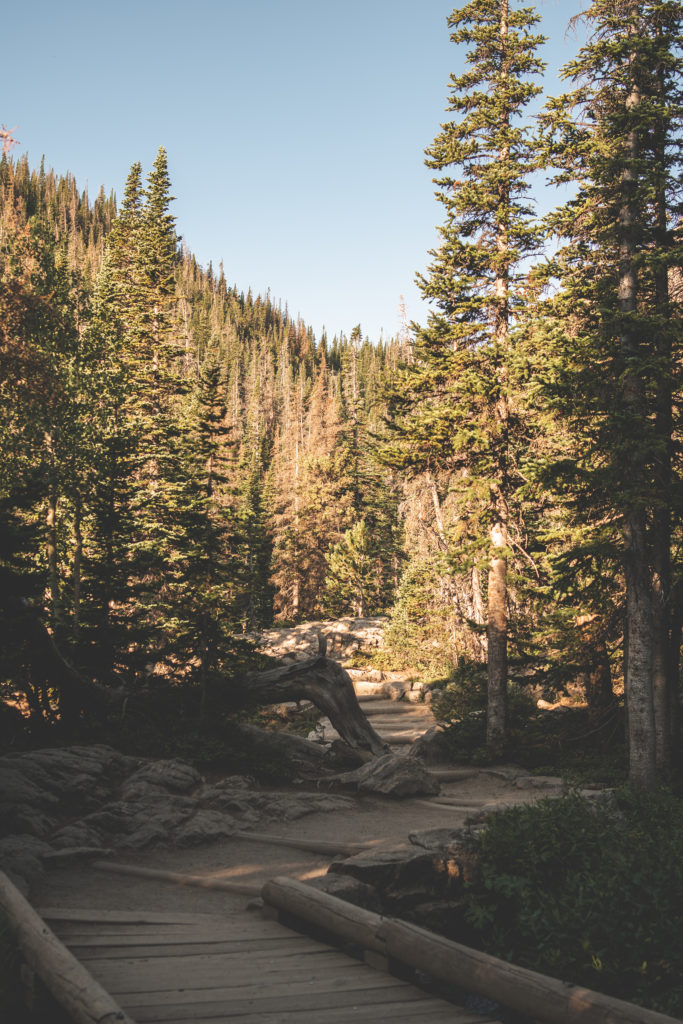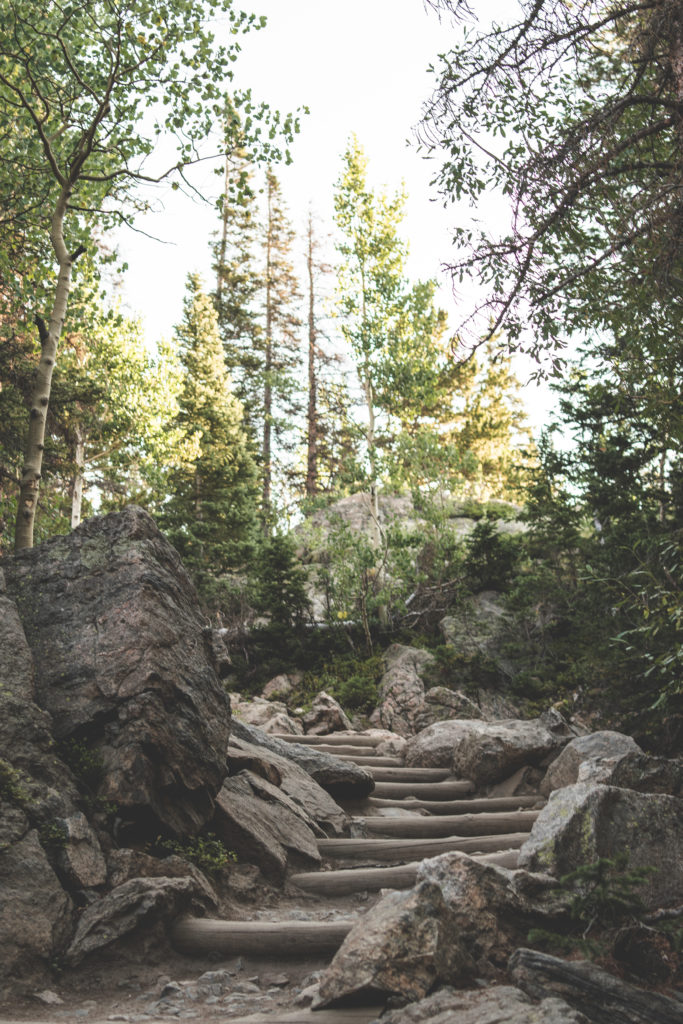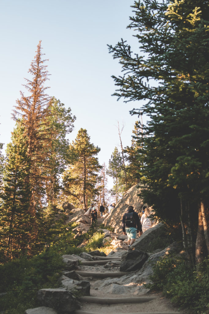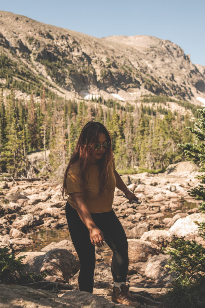 8.16 is also my birthday and I was so determined to do this hike regardless of my situation. We woke up at 3 am because we stayed in Brighton, CO so it was quite the drive but the views were definitely worth it. We arrived to the Bear Lake trailhead just before 6 am and the parking lot was almost full – thankfully we found a spot! We hiked Emerald Lake that started with a bit of an incline and eventually led us to Dream Lake which is absolutely incredible. There were still a lot of people already there and hiking back, we turned back around and hiked the Lake Haiyaha trail, a moderate 3.6 mile trail but let me tell you, the incline is no joke! We didn’t make it all the way because I was too exhausted and decided to turn back and head to our rental van.