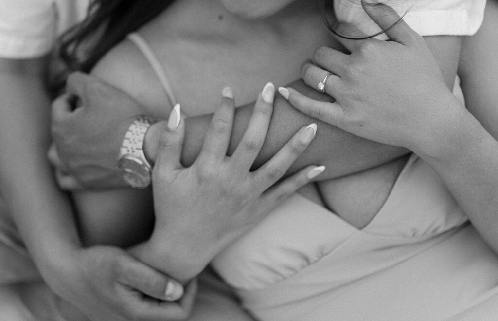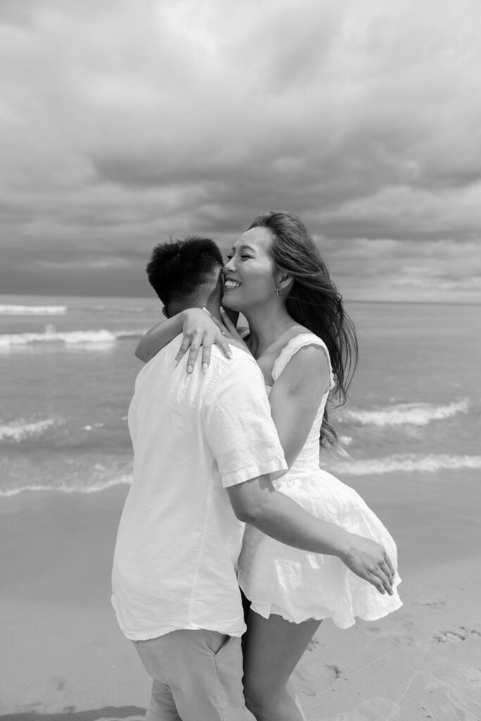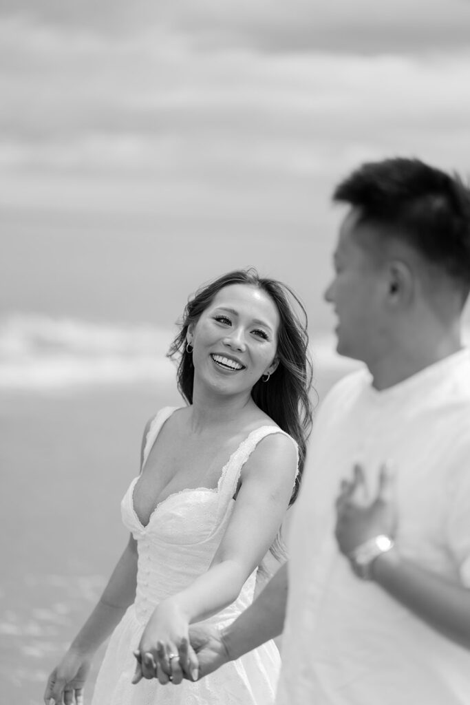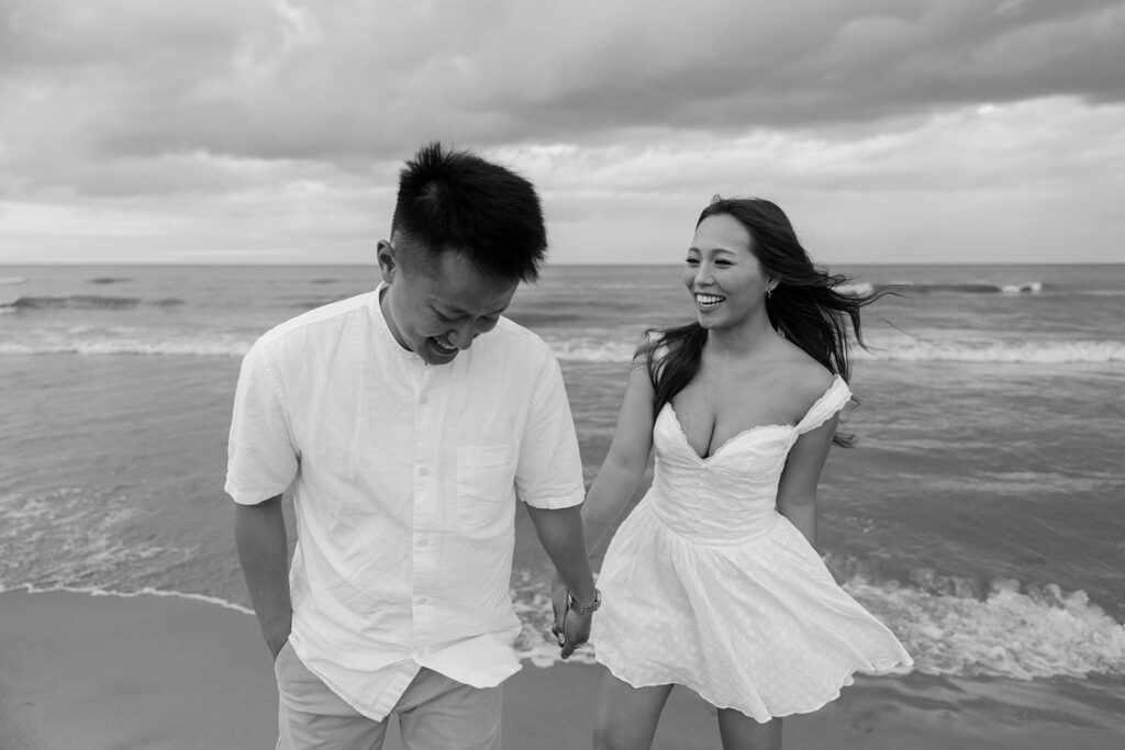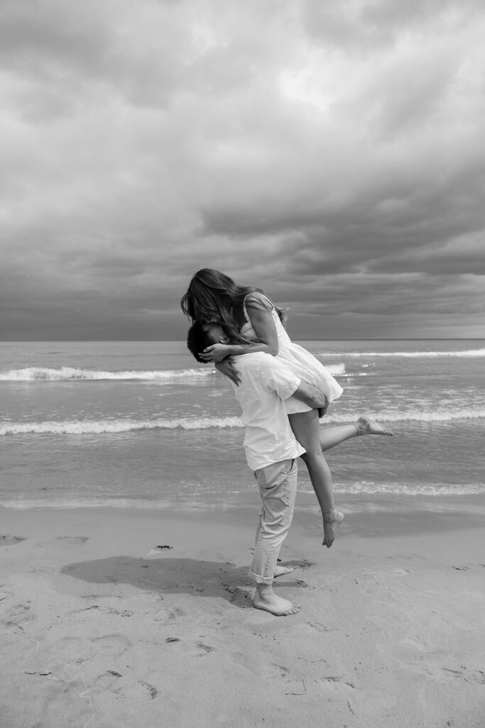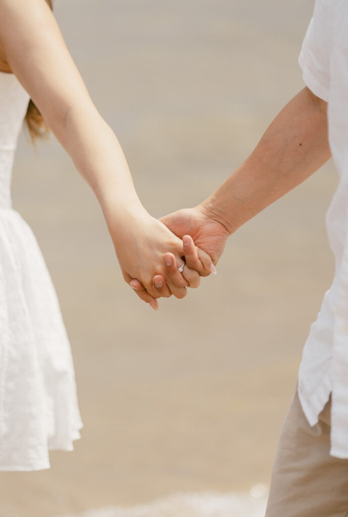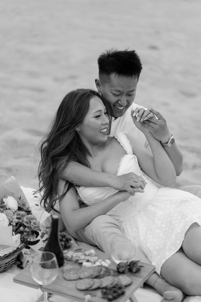 There are so many cute and fun things out there to make your engagement photos showcase you and your partners love. For this romantic photoshoot, I chose to create a beach picnic, allowing the couple to interact with one another in a way that resulted in the most romantic photos. But there are so many other fun engagement shoot ideas out there yet! A coffee shop date, intimate home session, or a trip to a local brewery can truly elevate and personalize your engagement photos.