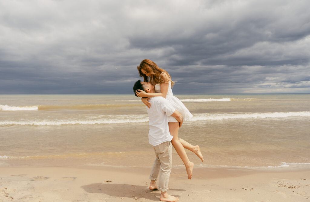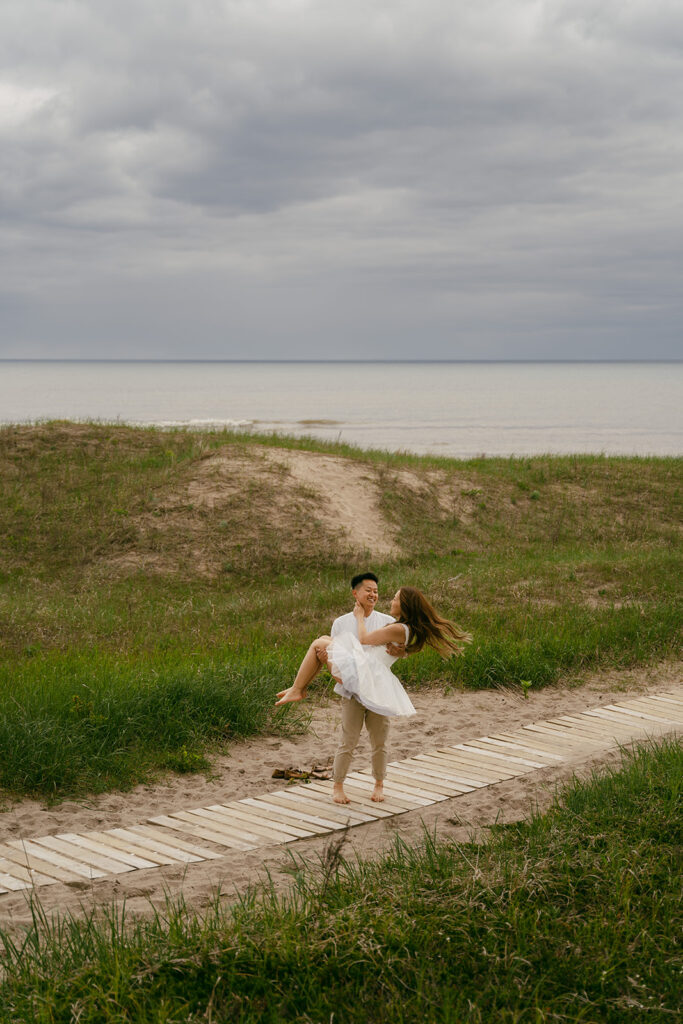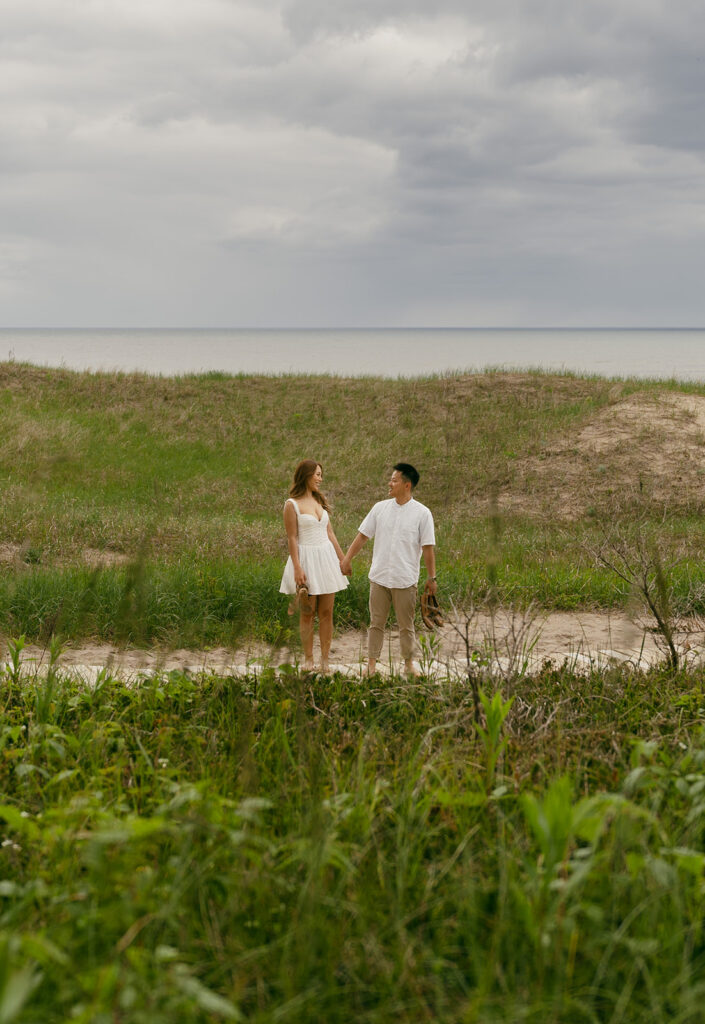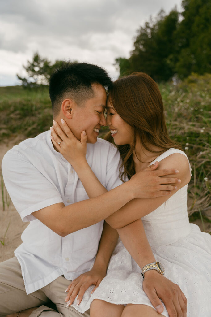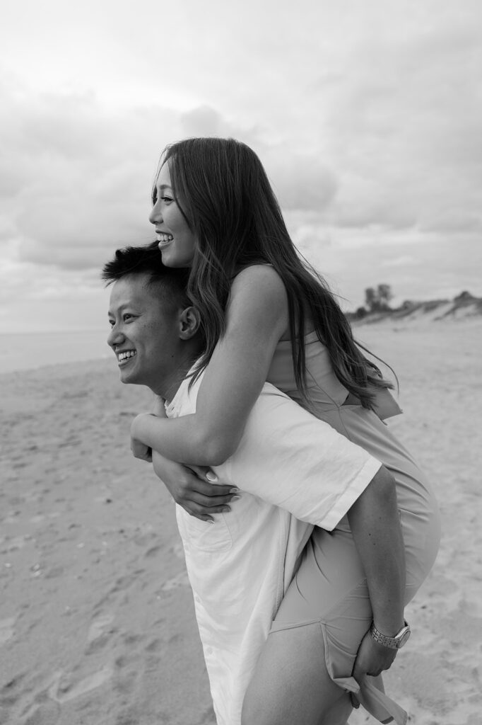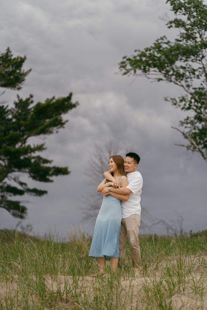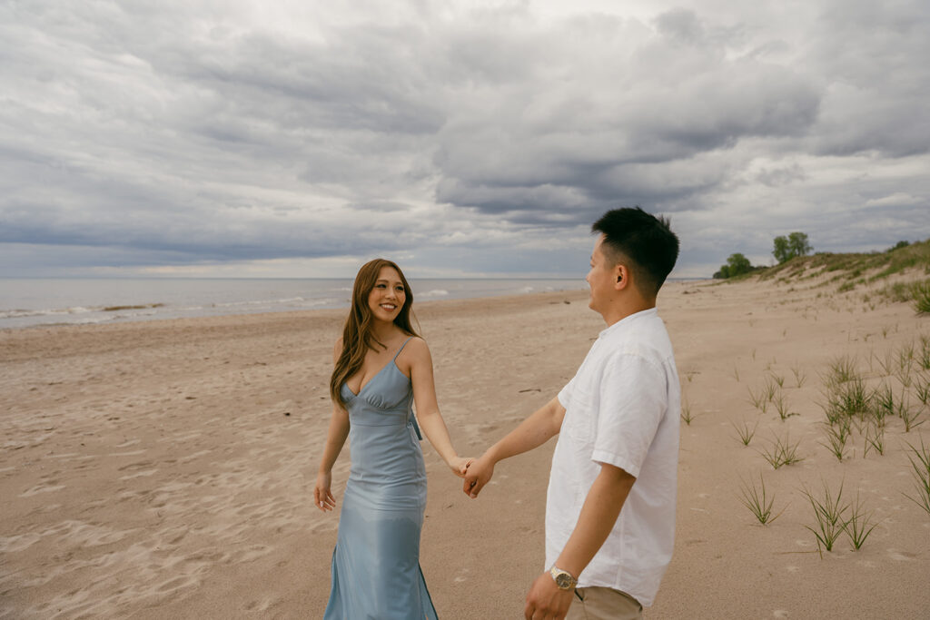 Capturing Gao Sheng and Michael’s special bond was so fun. This couple seriously made my job so easy, the love they have for each other can be seen in each photo. Their romantic engagement photoshoot was a fun one, and if you or someone you know are looking for a few ideas, you’ve come to the right place! Kohler Andrae State Park is the perfect beach for couples looking for a beach-like waterfront location without having to travel to the ocean.