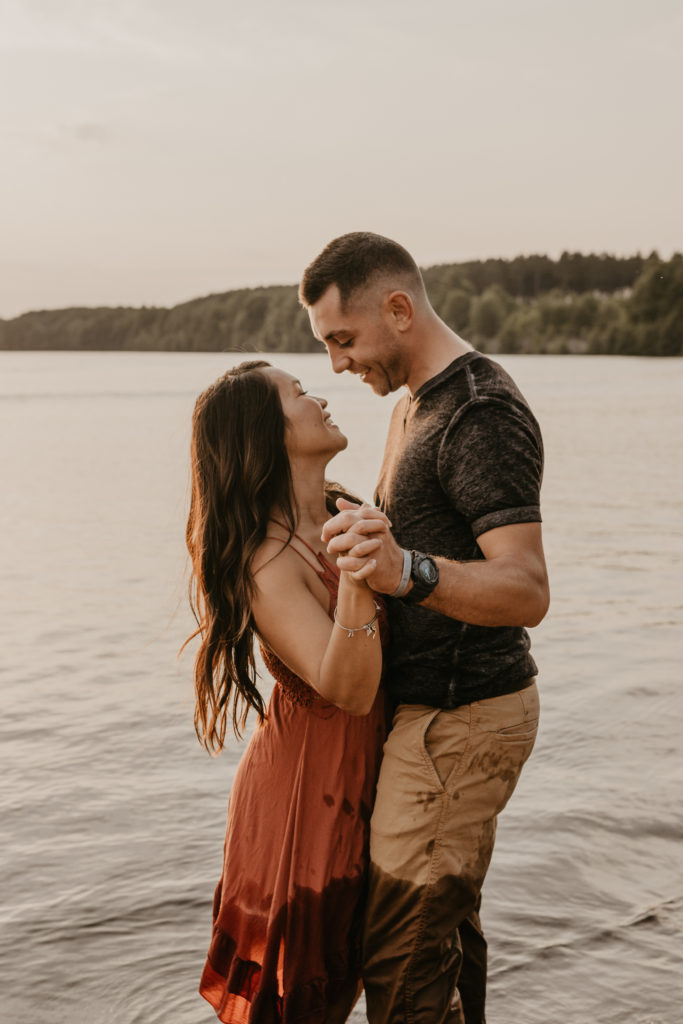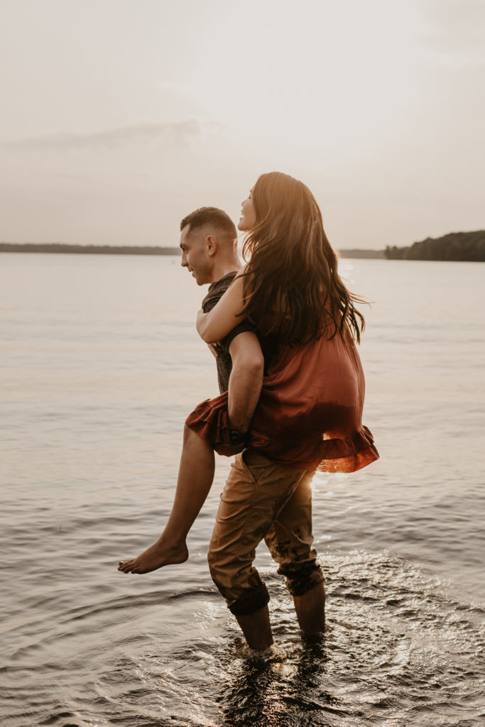 Christine + Andrew are such a vibe and south beach on Lake du Bay couldn’t have been more perfect! Why are sunset sessions my favorite? I just love how creamy and golden this engagement session is. If you aren’t afraid to get a little dirty, loves snuggles and kisses, you could have a dreamy engagement session similar to this!